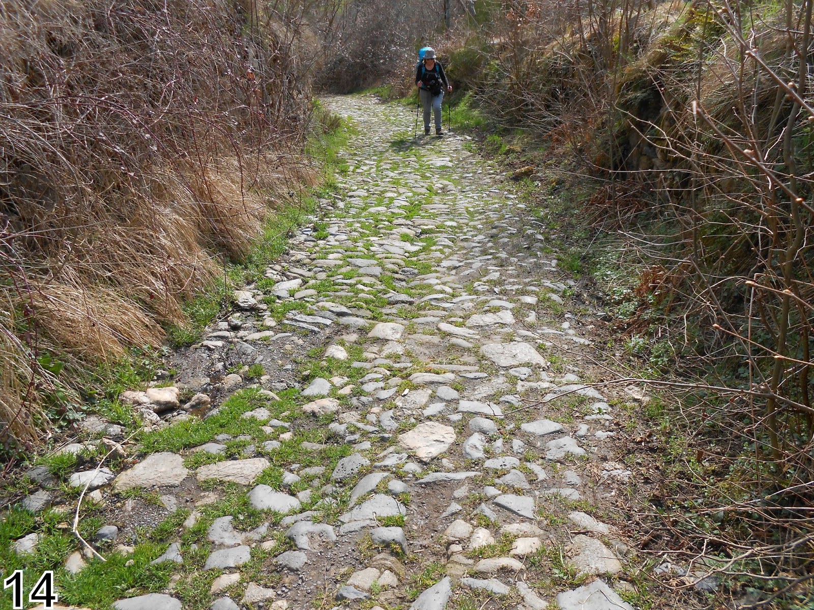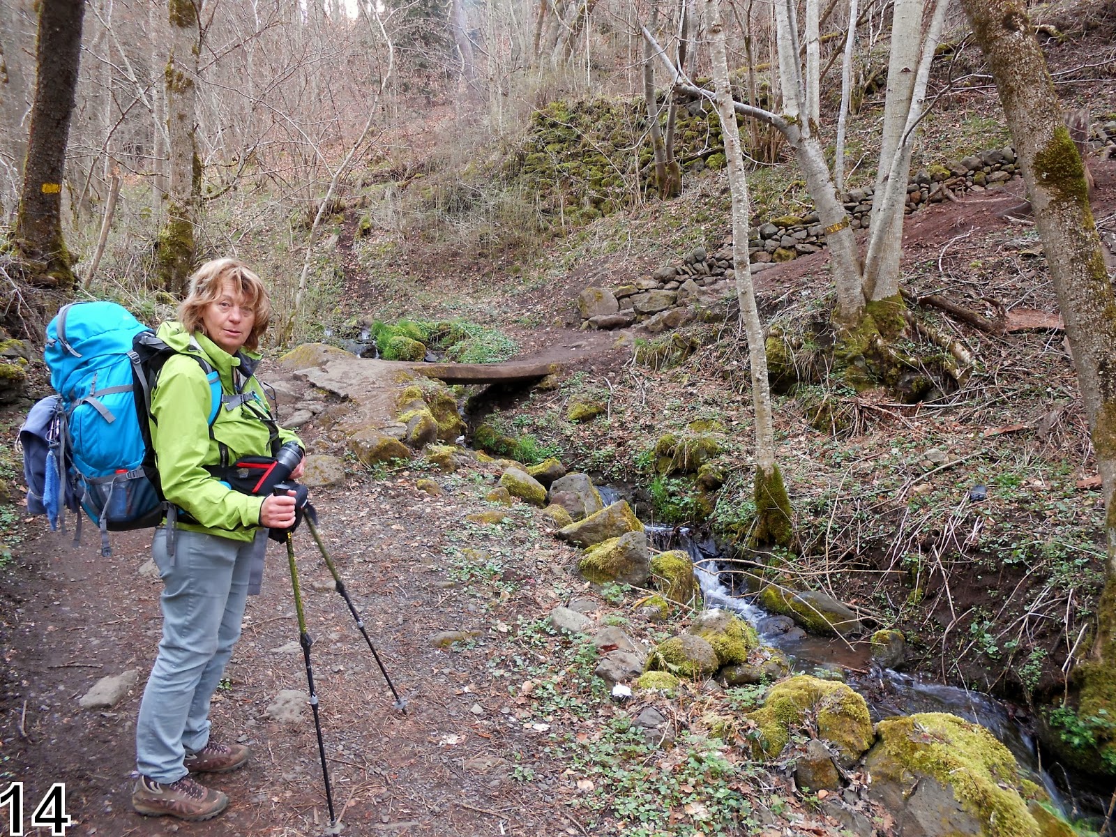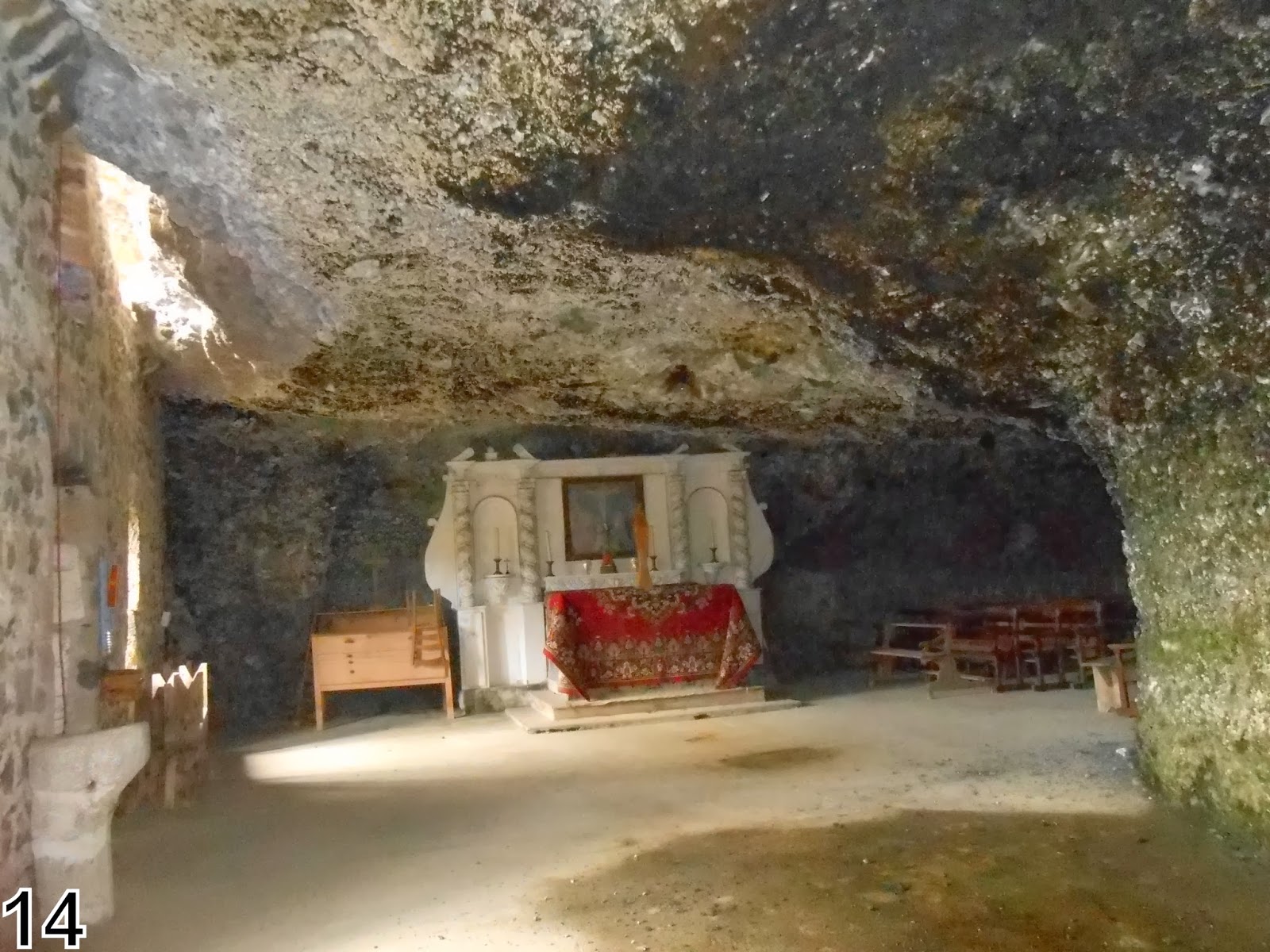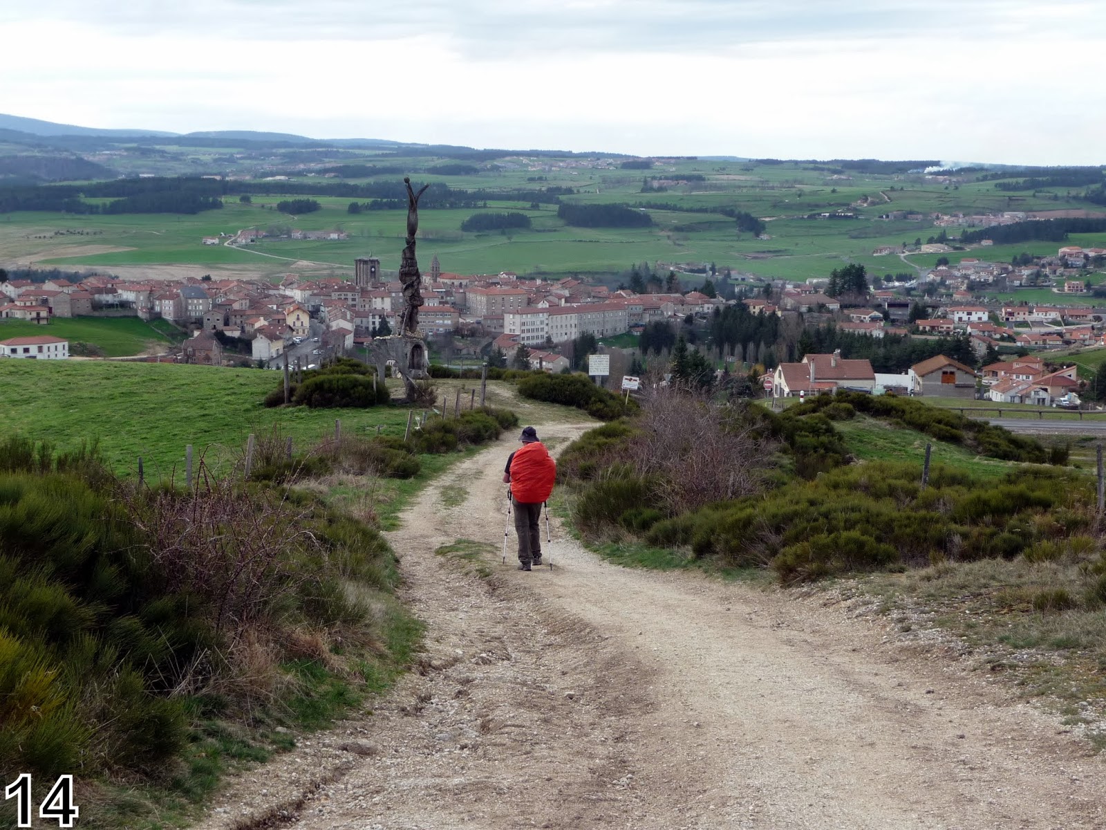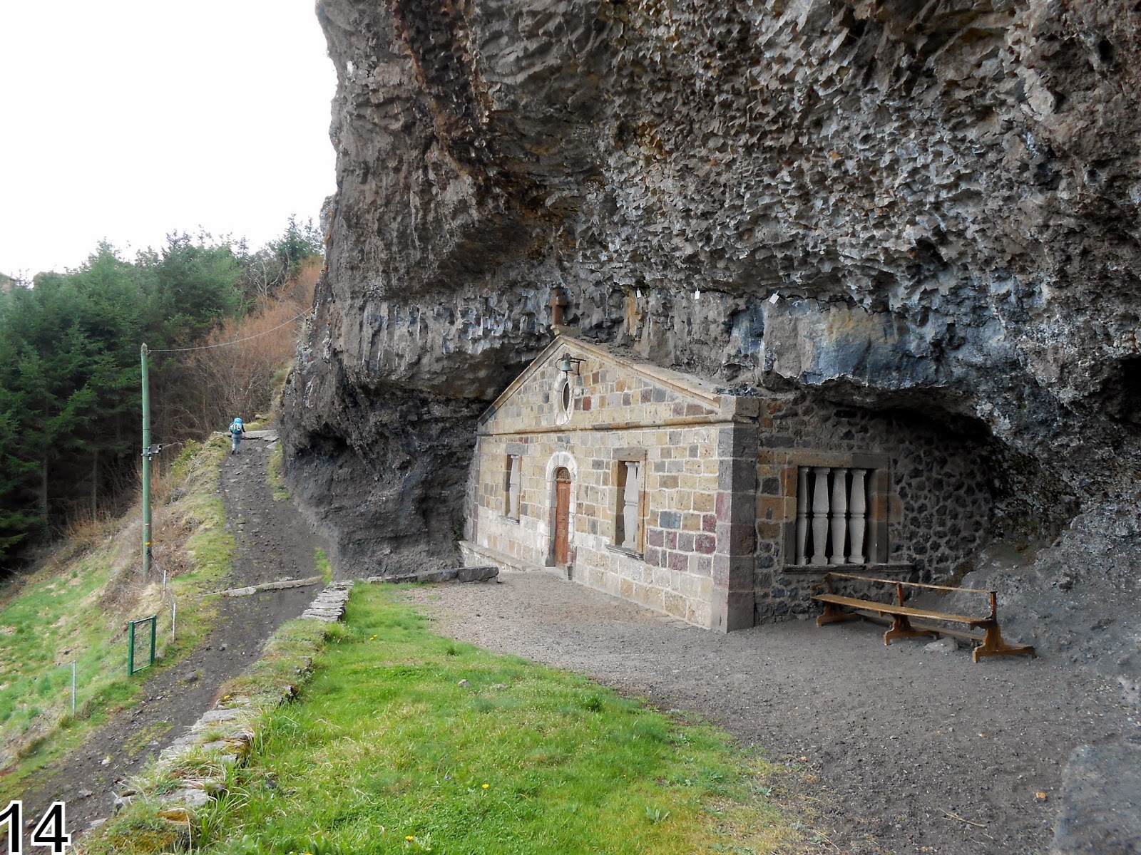 Hésitations : on s'arrête ou on continue ? finalement nous attaquons une montée plus que raide, un vrai escalier passant devant la chapelle troglodyte Sainte Madeleine, s'ensuit une partie dans les bois avant d'atteindre la plateau qui domine Saugues.