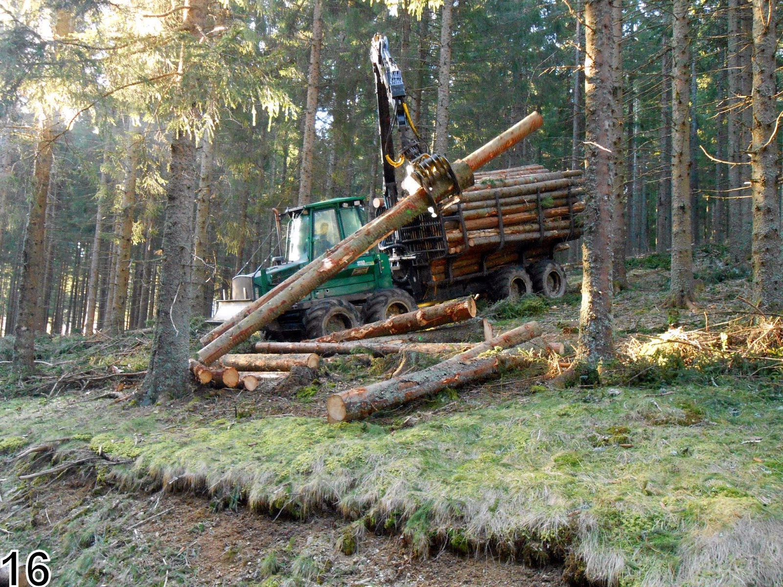 Nous quittons le Sauvage à 8h pour traverser la forêt où des bûcherons sont en pleine action.