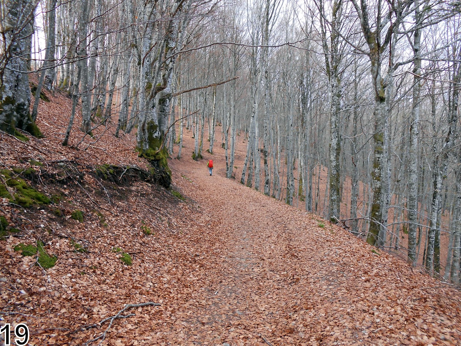 Sortie du village niché au fond de sa vallée, par un beau pont médiéval "du pèlerin" et une belle montée en sous-bois sous un soleil pâle pour déboucher sur le plateau.