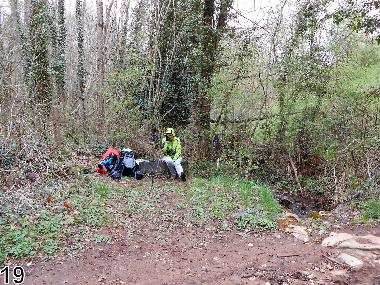 Après avoir cheminé seuls nous arrivons dans un hameau où Roger et Suzanne offrent un petit réconfort : café, thé, jus de fruits etc ... le tout à l'abri du four banal très bien restauré. Quelle belle rencontre avec ces paysans retraités qui partagent l'aventure des pèlerins !