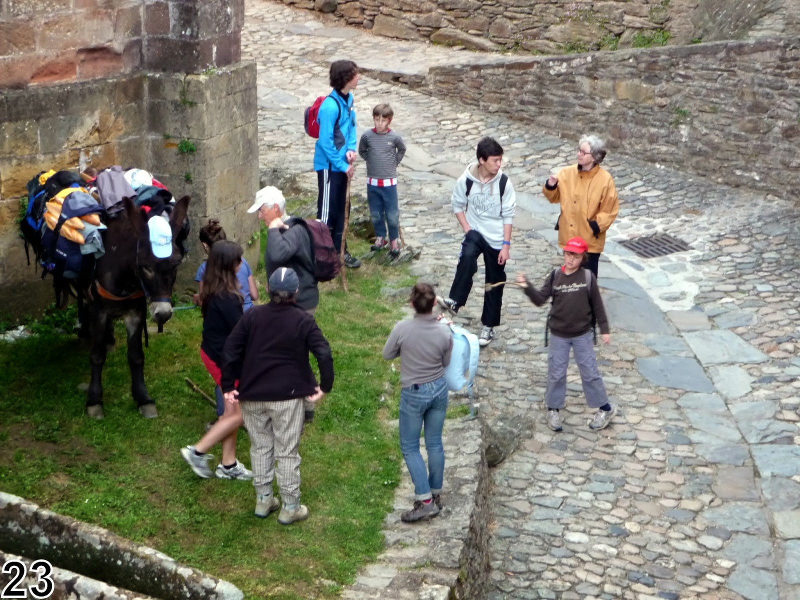 Ce matin nous prenons le temps car journée de repos pour nous alors que se prépare au départ, sous nos fenêtres, une famille bien sympathique (les grands-parents et leurs petits enfants) et leur âne.