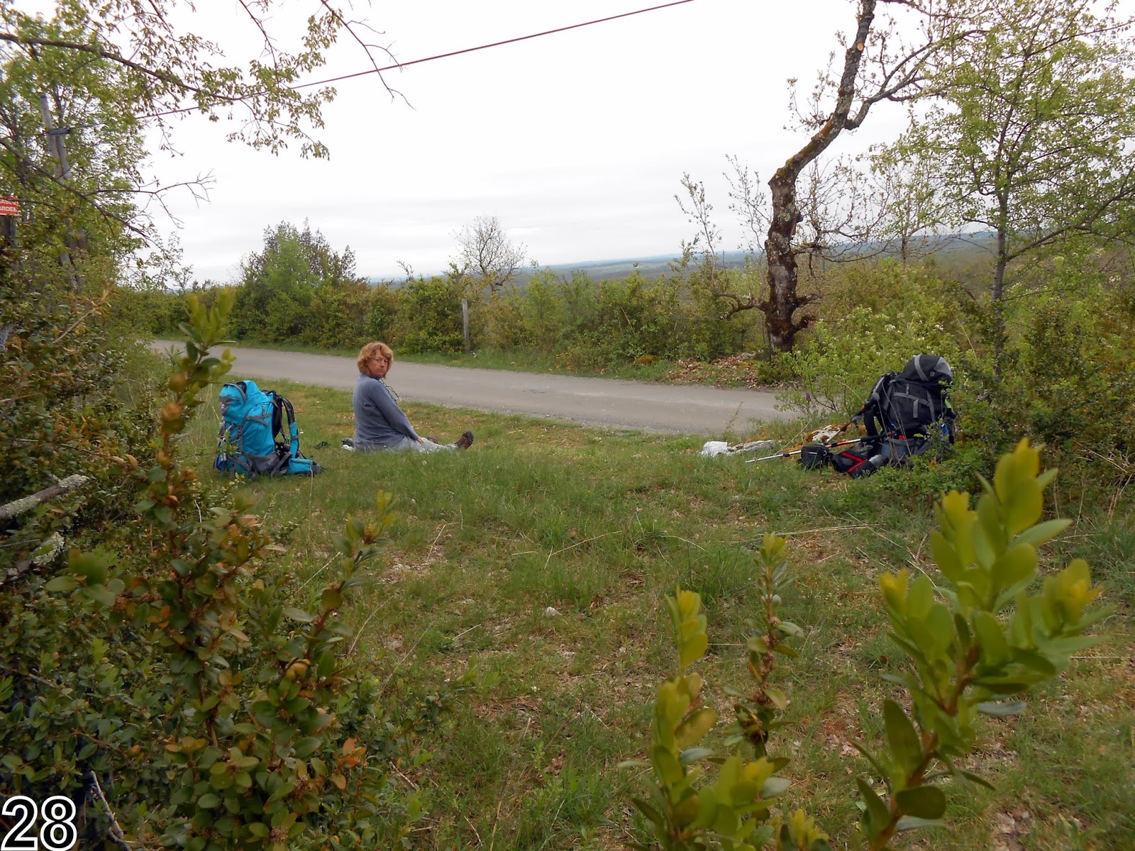 long plateau boisé : on profite d'une éclaircie du paysage pour la pause |