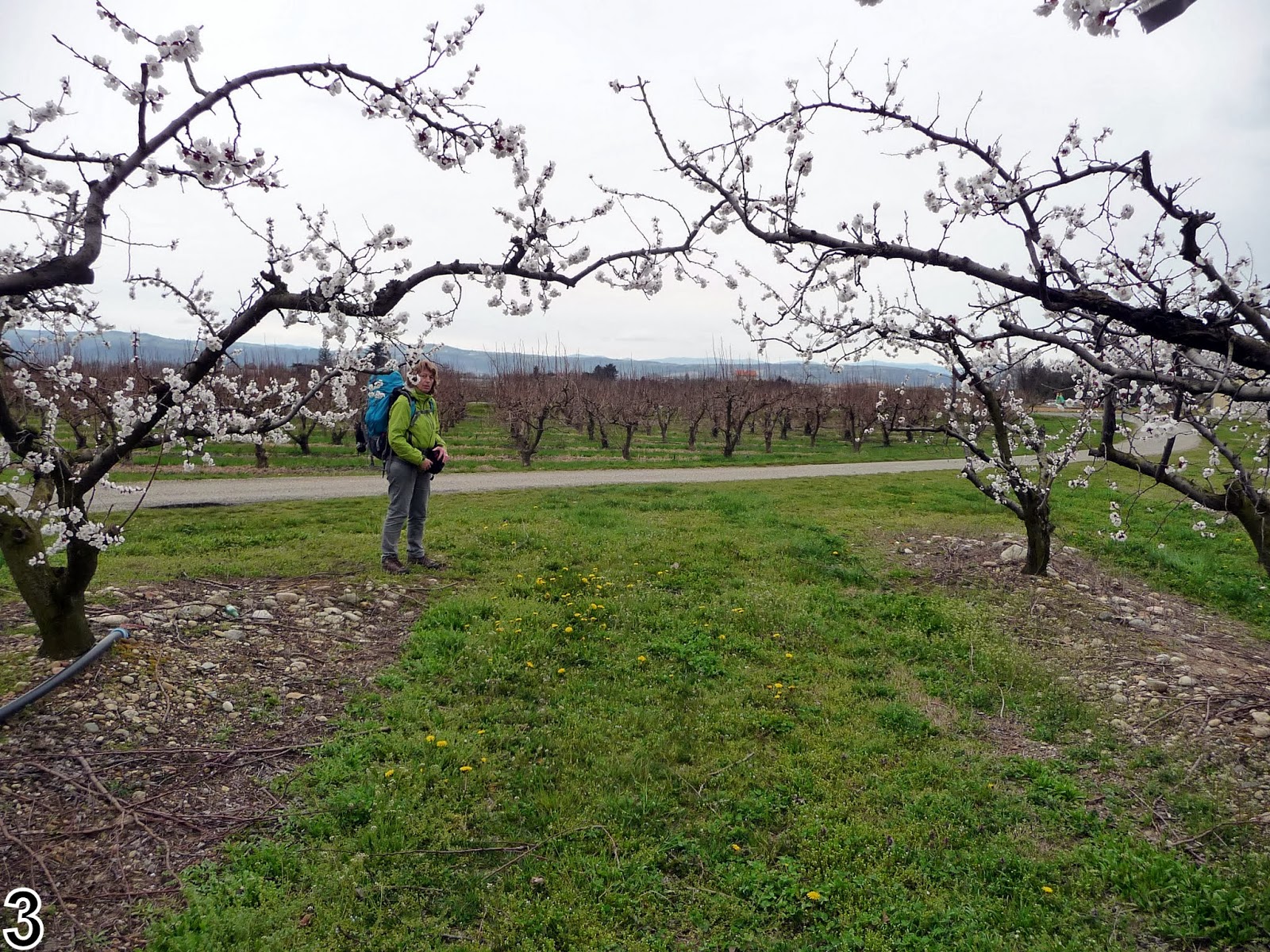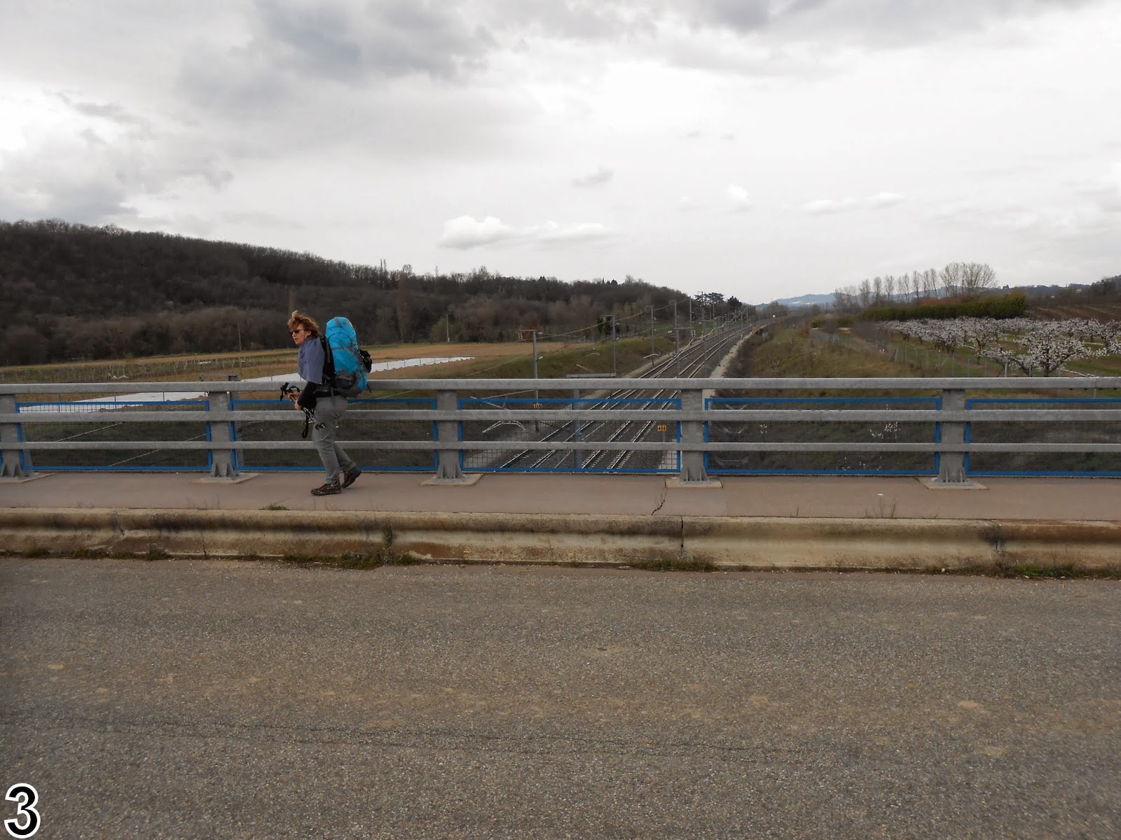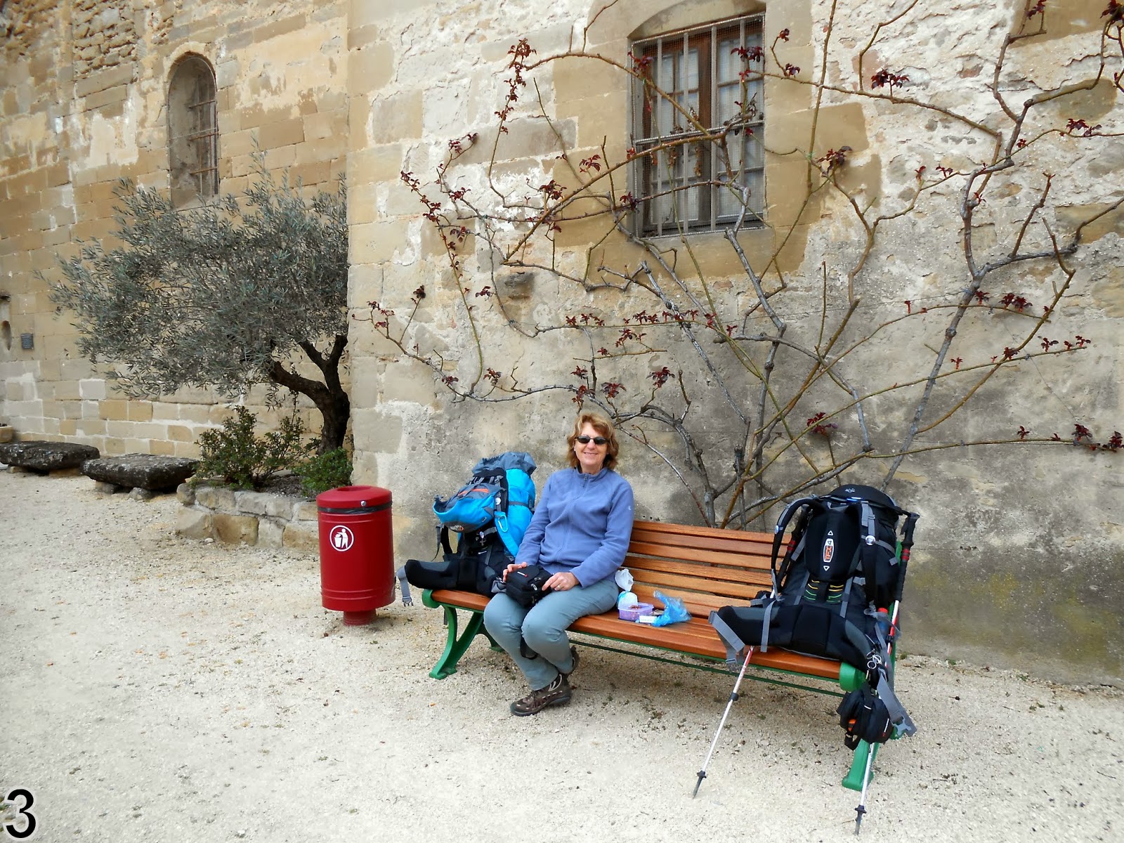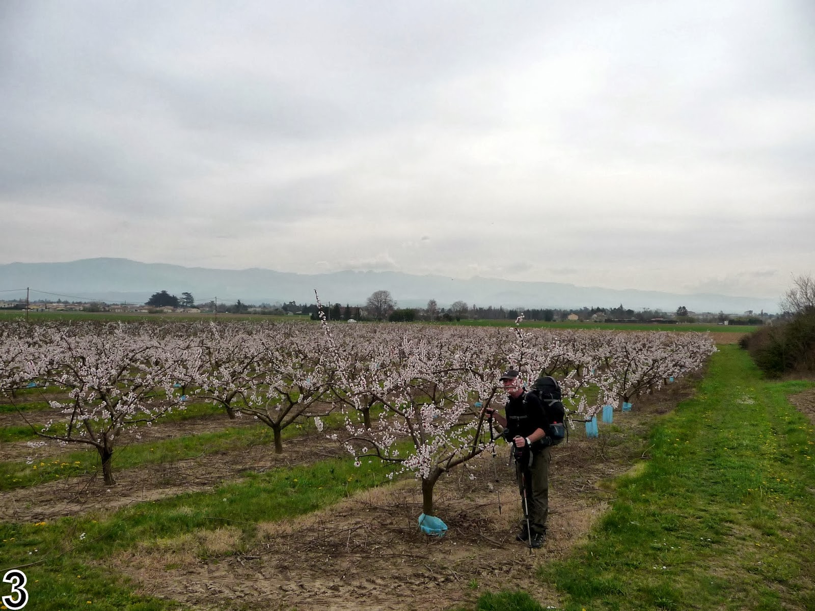 Celui-ci étant fermé et compte tenu de l'heure nous faisons une halte bienfaisante au soleil puis nous poursuivons notre chemin dans la plaine couverte d'arbres fruitiers pour atteindre Pont de l'Isère sous une pluie fine mais froide, à la recherche d'un hébergement. La patronne de l'établissement (complet) aura la gentillesse de nous trouver un chauffeur qui nous emmènera dans son fourgon de chantier à 15 kms de là dans un hôtel voisin !