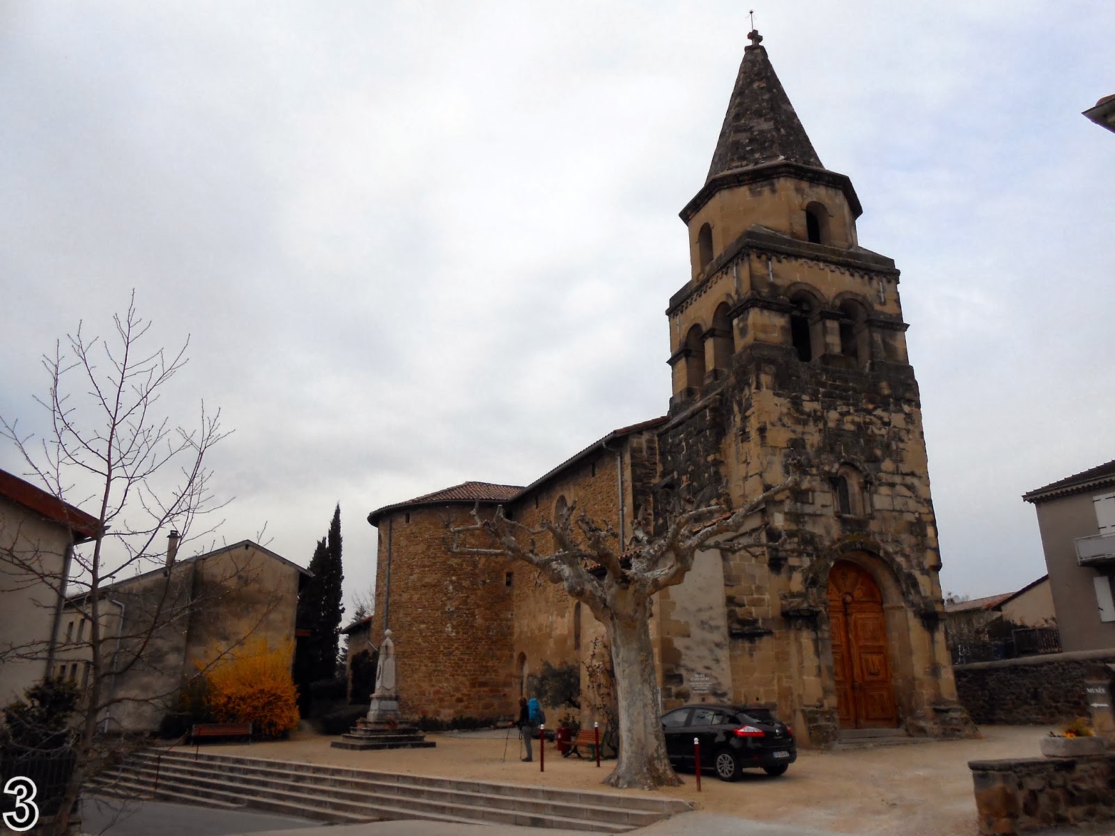 Pause repas à Mours St Eusèbe devant la très belle église romane, puis marche en direction de l'accueil jacquaire des Balmes.