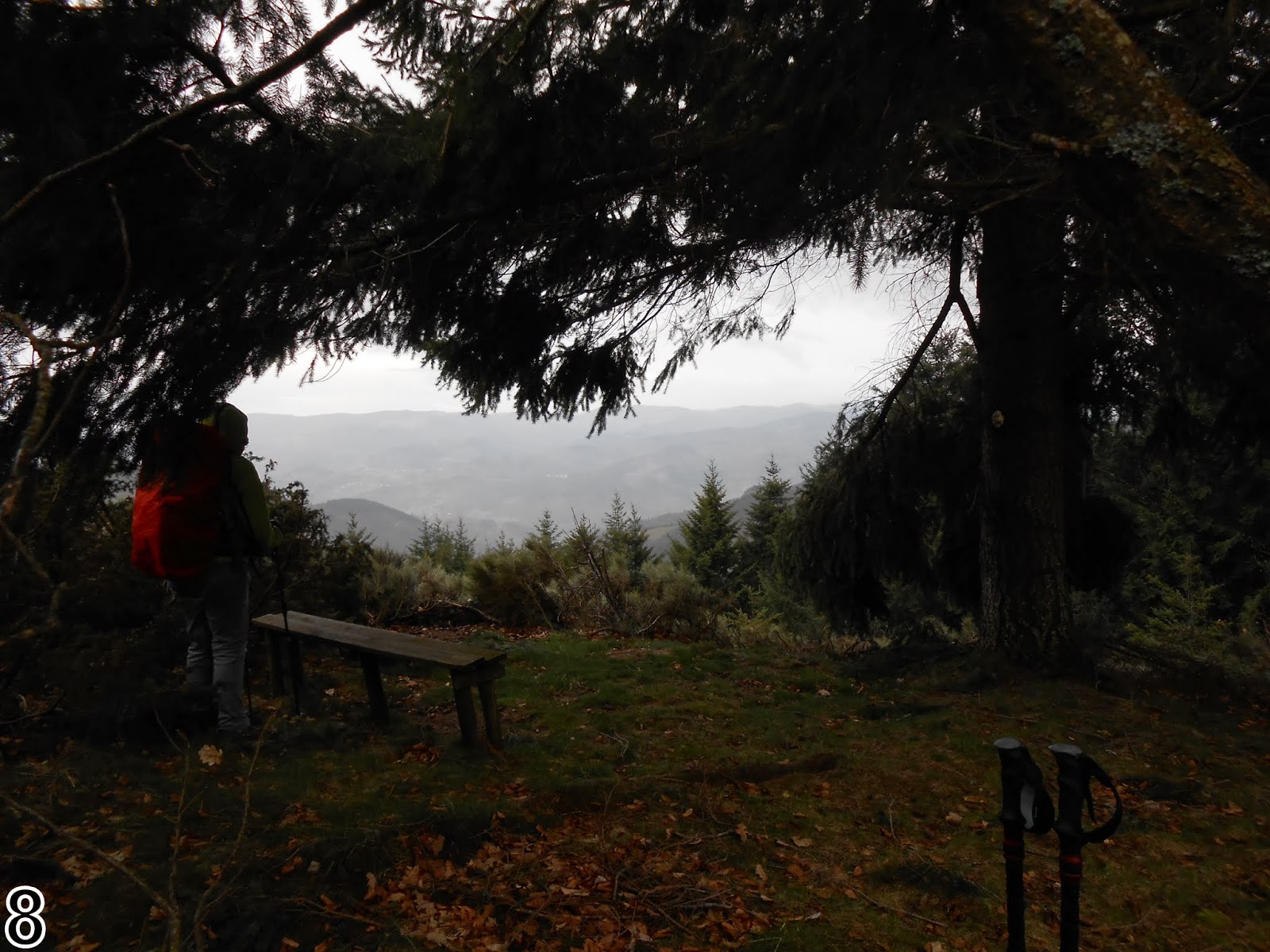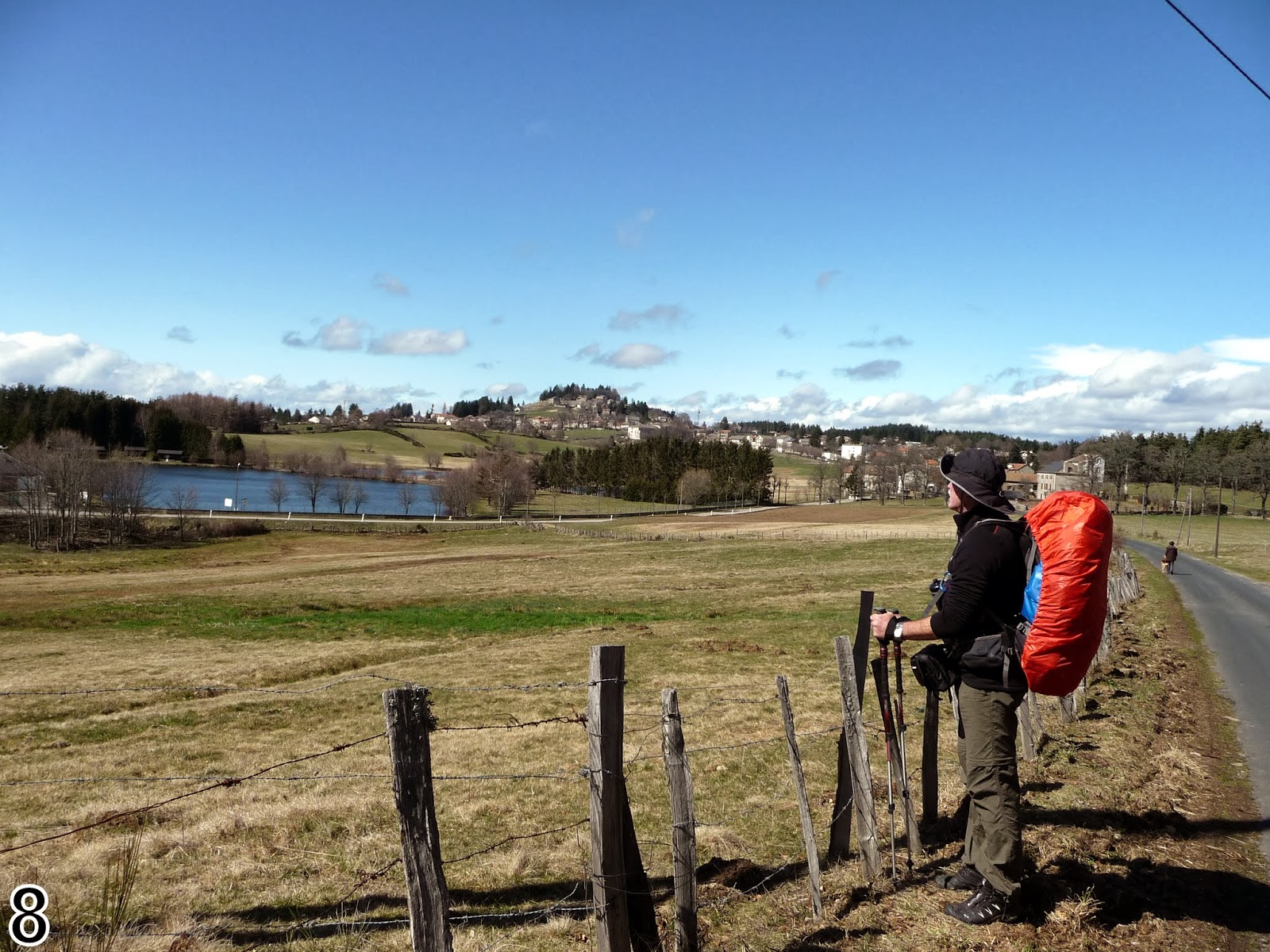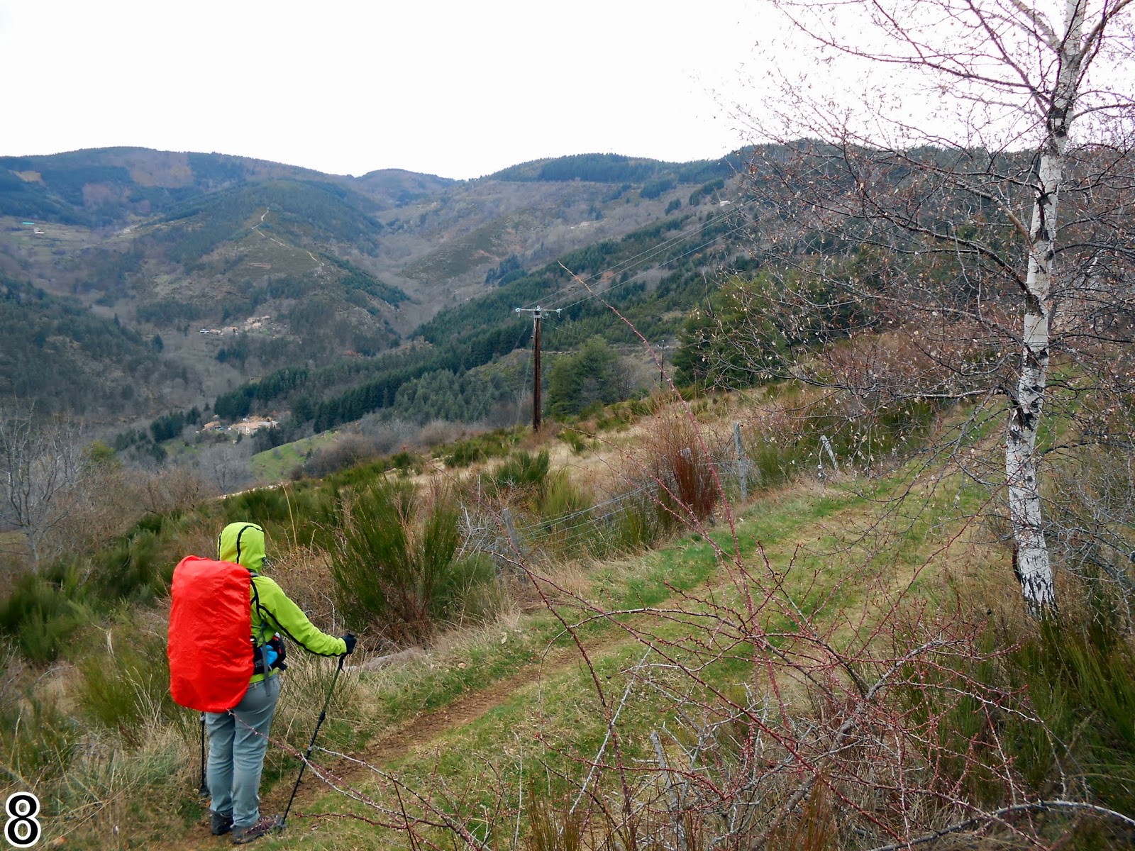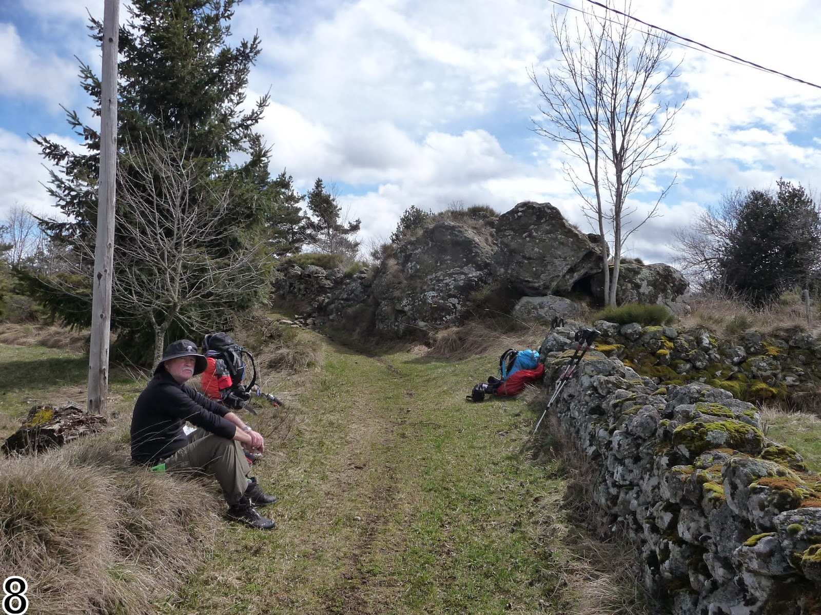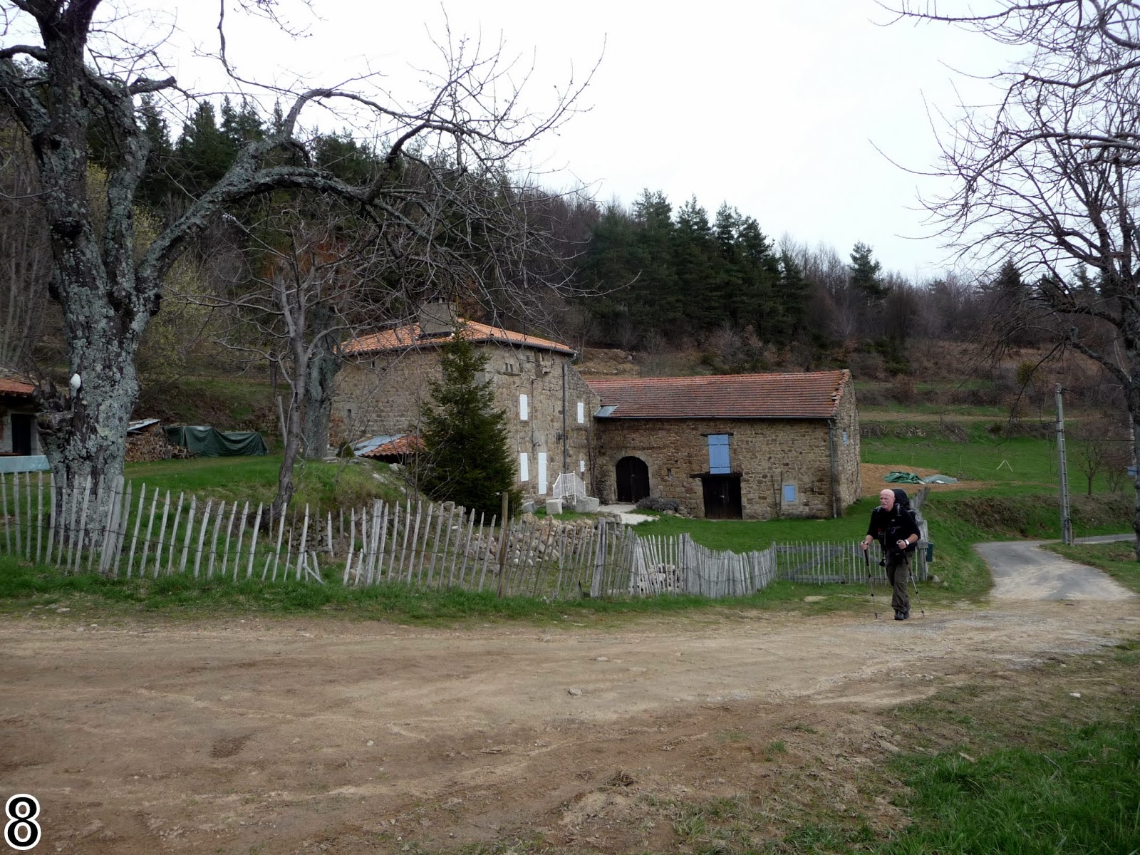 Nous cheminerons ensuite par des passages en forêts de résineux, des sentiers très aérés avec de très beaux paysages et de bons dénivelés : parti de 680 m à près de 1200 m. Le temps frais entrecoupé de giboulées sera à l'image de ce parcours varié ! Près d'une chapelle "de hameau" nous trouverons un thermomètre marquant 2°. Se rapprochant de St Agrève le vent du nord vient chasser cette grisaille et l'on finira l'étape sous le soleil.