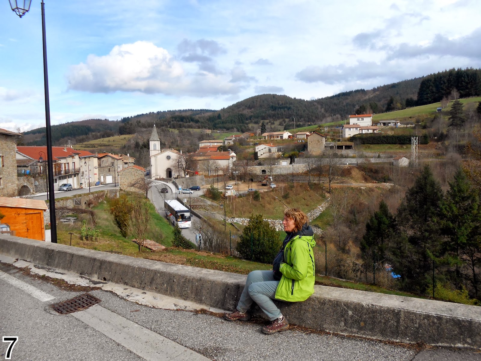 Un pâle rayon de soleil nous accompagnera pour la pause sandwich jambon et nous finirons l'étape avec un temps assez clément. Nous aurons traversé successivement et selon l'altitude des forêts de sapin et des plantations de châtaigniers : l'Ardèche dans toute sa beauté ! L'arrivée aux Nonières se fait par une descente abrupte.