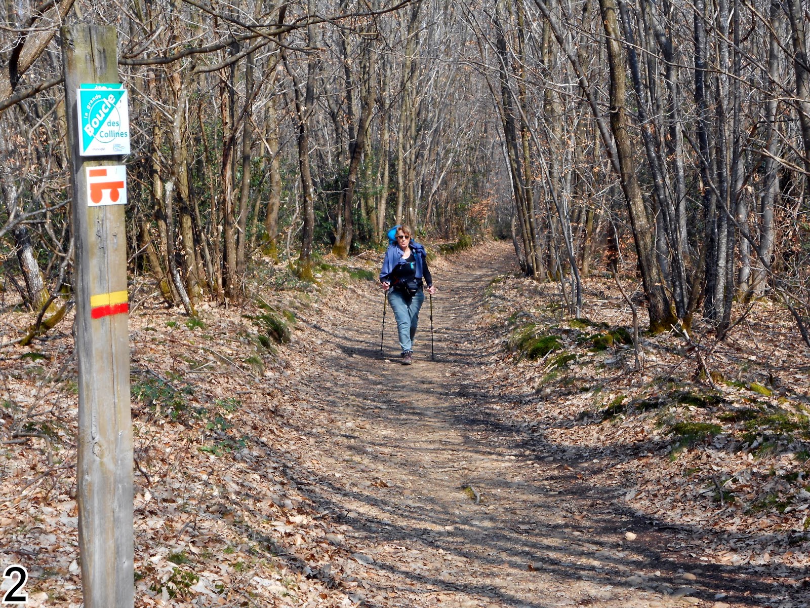 Belle journée de printemps avec le vent du nord : l'idéal pour marcher. En sortant de ce "plus beau village" on saluera le tailleur de pierre, puis ce sera une bonne montée qui rappellera à nos jambes les km d'hier.Ce sera ensuite un beau sentier, un peu boueux, dans les bois de Chambarand. Pause repas à l'abri d'une haie puis le chemin deviendra sableux sur la seconde partie en direction de l'abbaye de Triors.