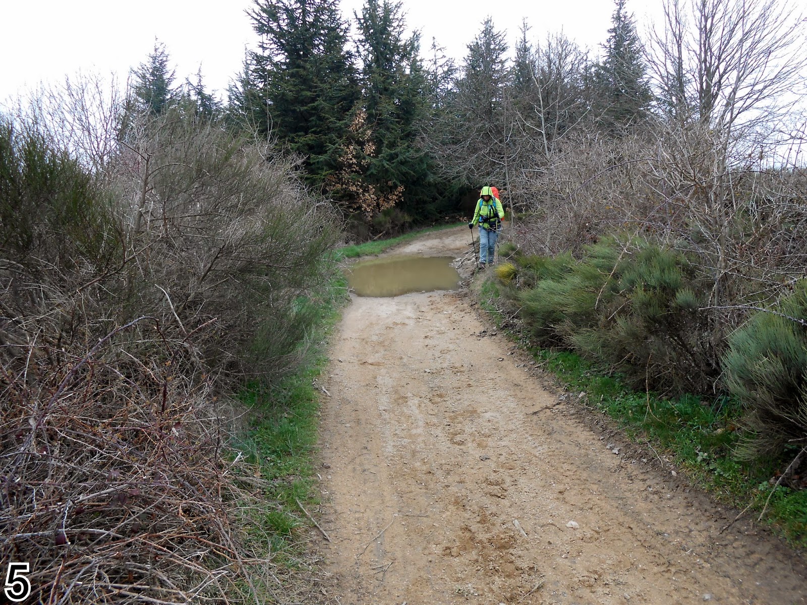 Départ du gîte dans le froid (2°) un fort vent du nord et la bruine ; on rejoindra le chemin à St Romain, à pied car notre hôte nous a fait faux bond pour le retour au village.