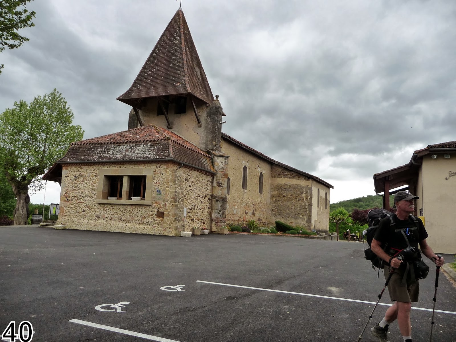 Nous passons devant une belle petite chapelle à Lanne-Soubiran, dans laquelle une pèlerine chante du grégorien, émouvant, même un chat local est en arrêt !