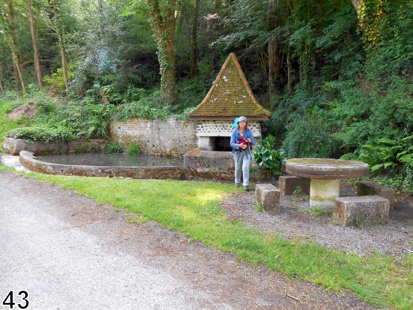 Nous poursuivons par une plaine agricole, une montée raide jusqu'au village de Castillon où un hangar équipé de quoi se reposer + frigo avec eau fraîche à disposition.La région et ses habitants sont très accueillants et mettent à disposition de petits aménagements pèlerins tout au long du chemin.