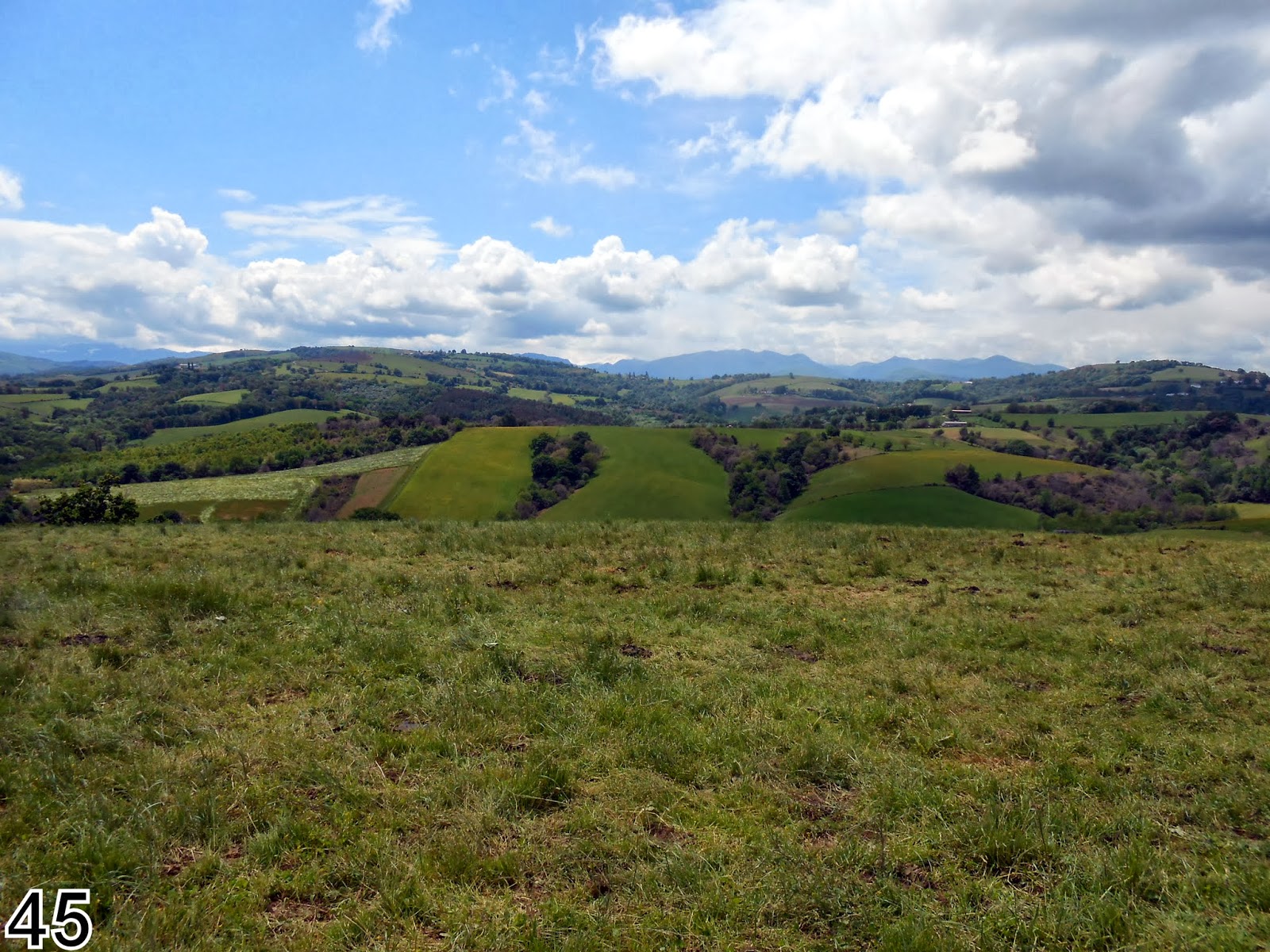 A partir d'Arroue nous continuons sur le GR qui emprunte la voie des crêtes : beau paysage et nous pouvons enfin apercevoir les Pyrénées entre les nuages, mais au total un bon nombre de kilomètres dans les jambes !