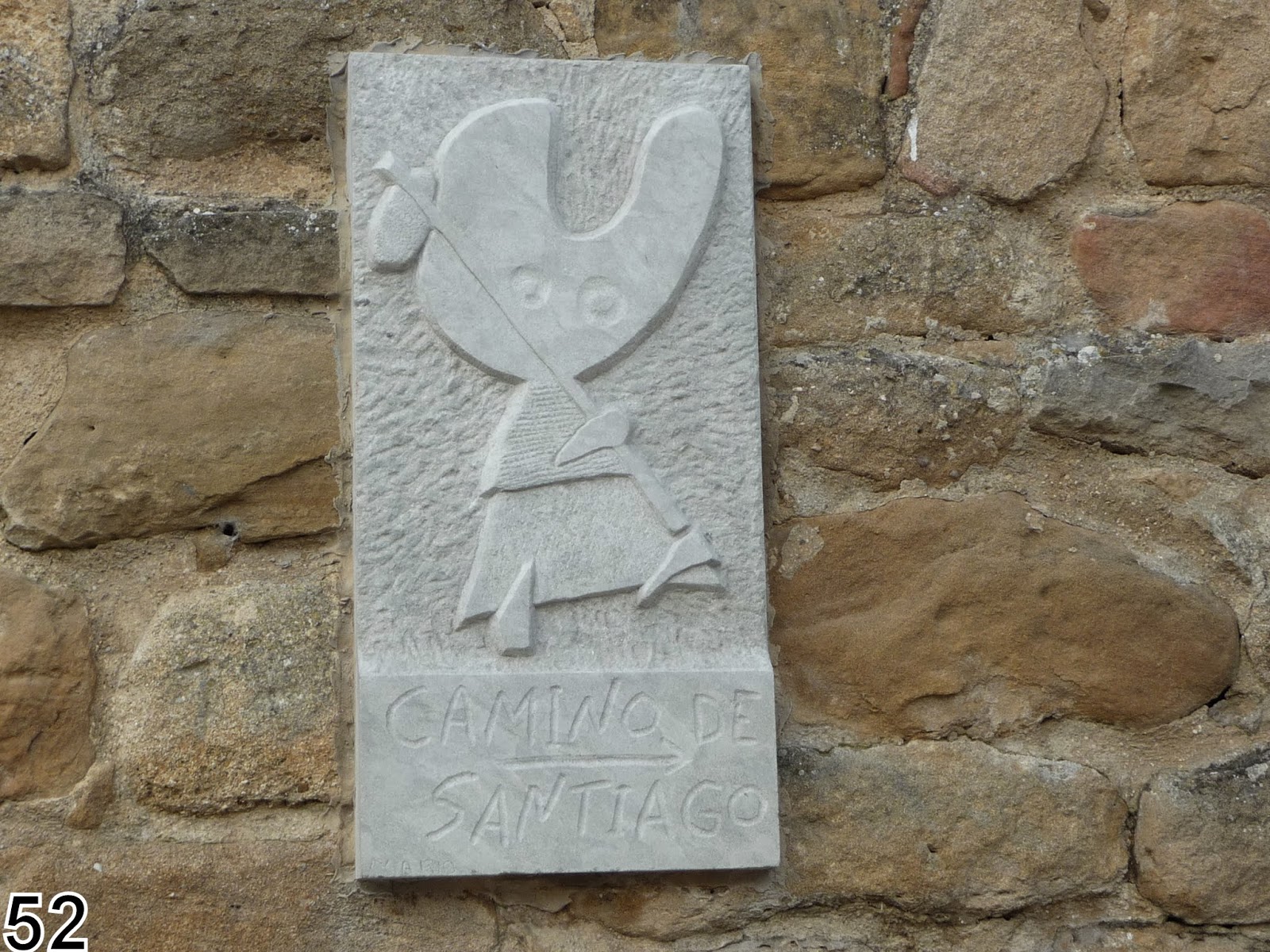 Nous partons après avoir avalé un petit café sorti d'un distributeur automatique, dans le petit hall d'entrée ! très peu de monde, nous sommes en dehors des grandes villes étapes. Passage du vieux pont romain et descente douce jusqu'à Lorca où nous prendrons un vrai petit déjeuner dans un bar situé avant un nouveau pont médiéval. Chaque traversée de village nous dévoile de belles et originales plaques rappelant que nous sommes bien sur le camino de Santiago.