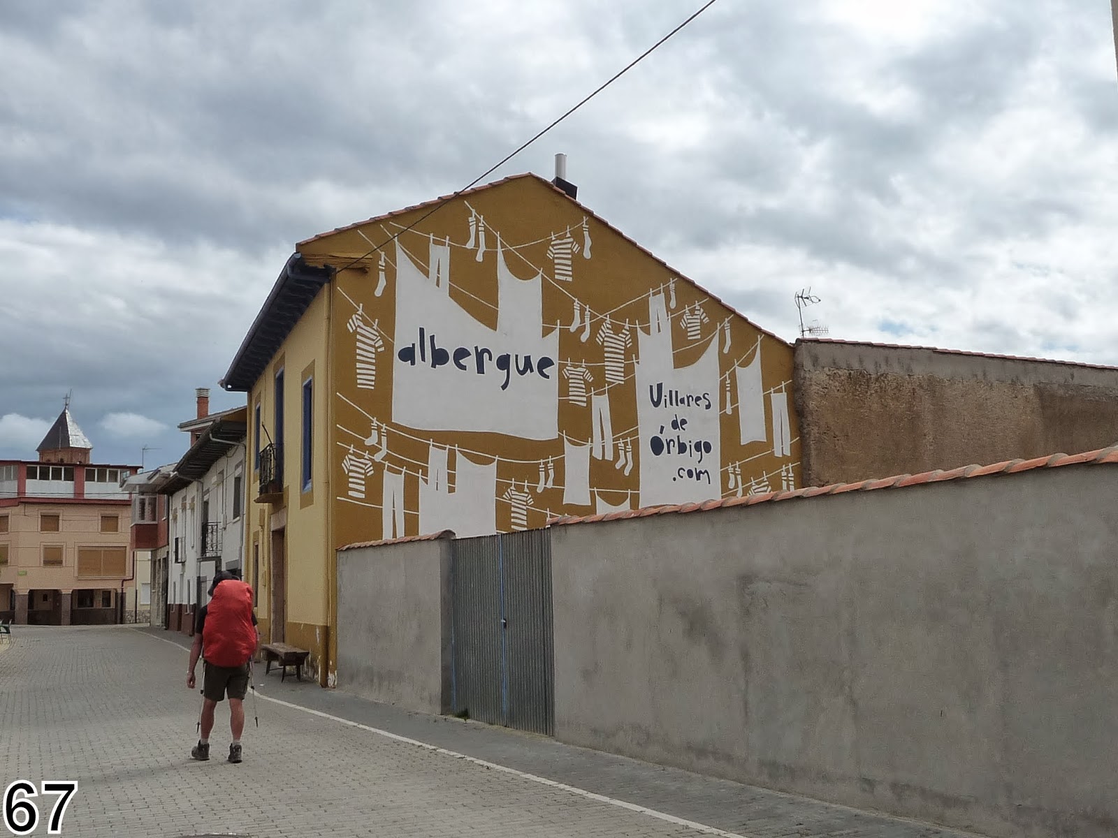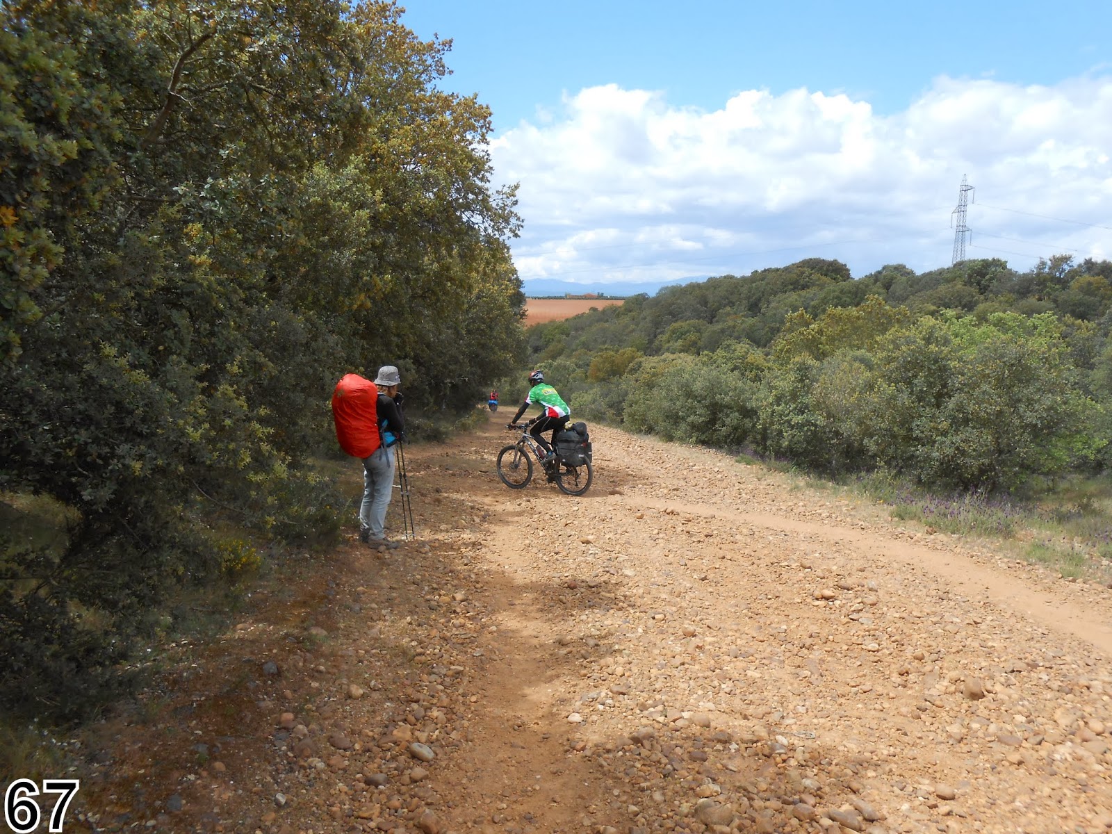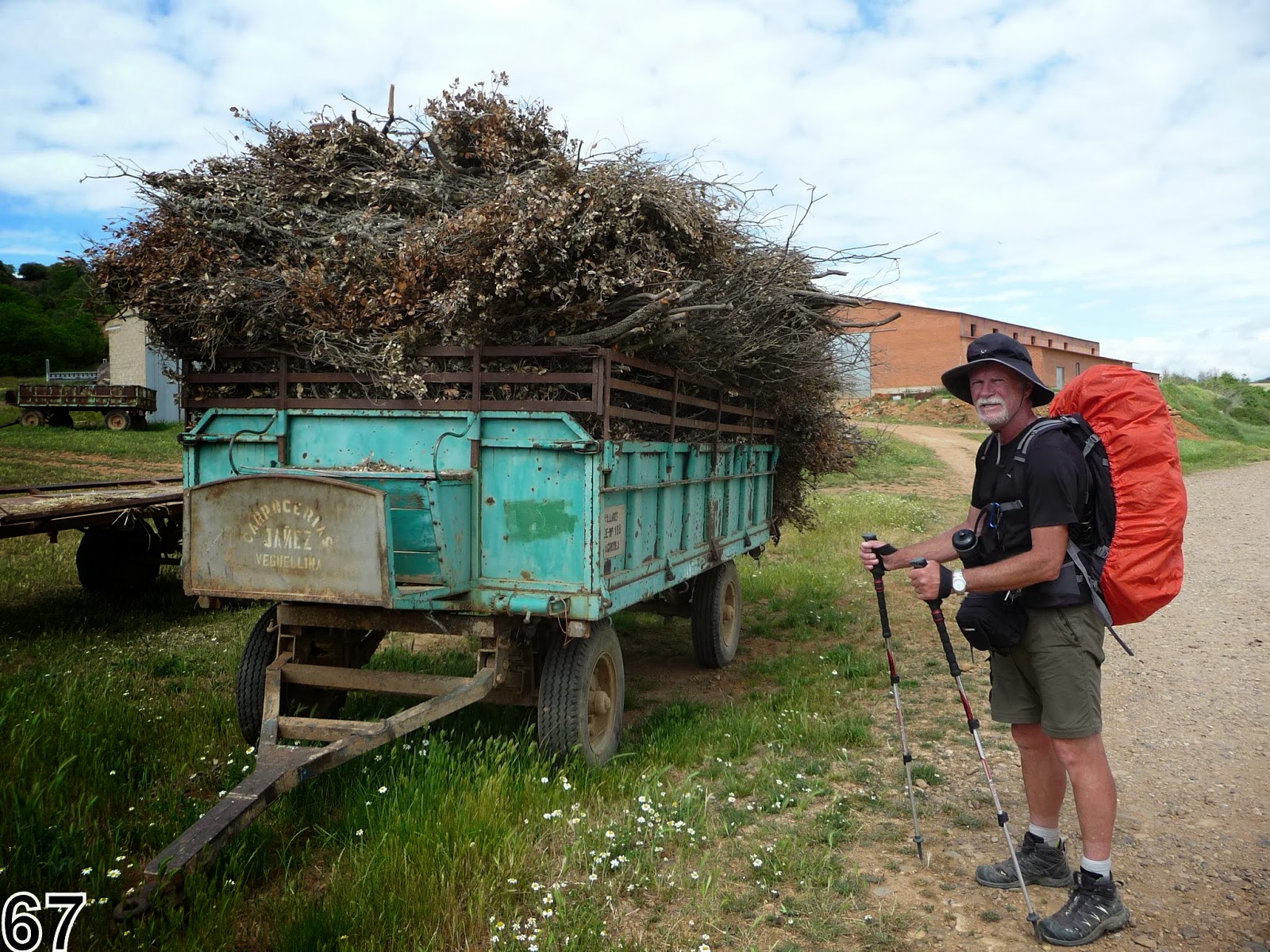 Malgré les aboiements des chiens, les va-et-vient nocturnes, la fatigue aidant et l'habitude de ces conditions, pour cette 66 ème nuit nous arrivons à dormir jusqu'à 6 h. Petit dèj au bar de l'albergue et nous filons jusqu'à environ 1.5 km quand Jean s'aperçoit qu'il a oublié sa gourde ! sac posé il fait un aller-retour au pas de course récupérer ce précieux accessoire.