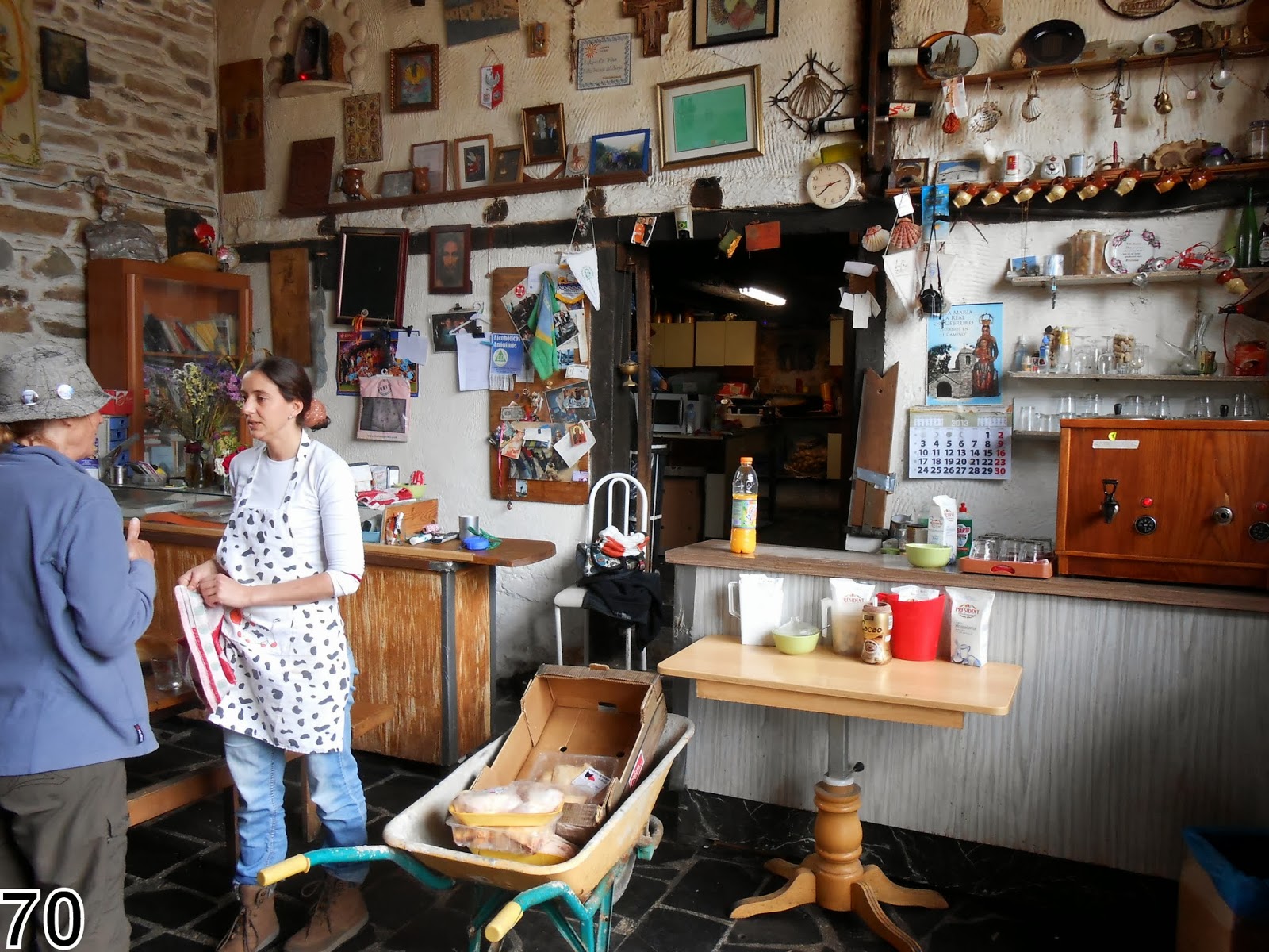 Le repas nous est servi dans une immense pièce en cours de reconstruction après un incendie. Jésus le maître des lieux qui a passé sa vie au service des pèlerins est très attentif à ce que nous ne manquions de rien : soupe, crudités, oeufs frits, cuisses de poulet, cerises, le tout à volonté.