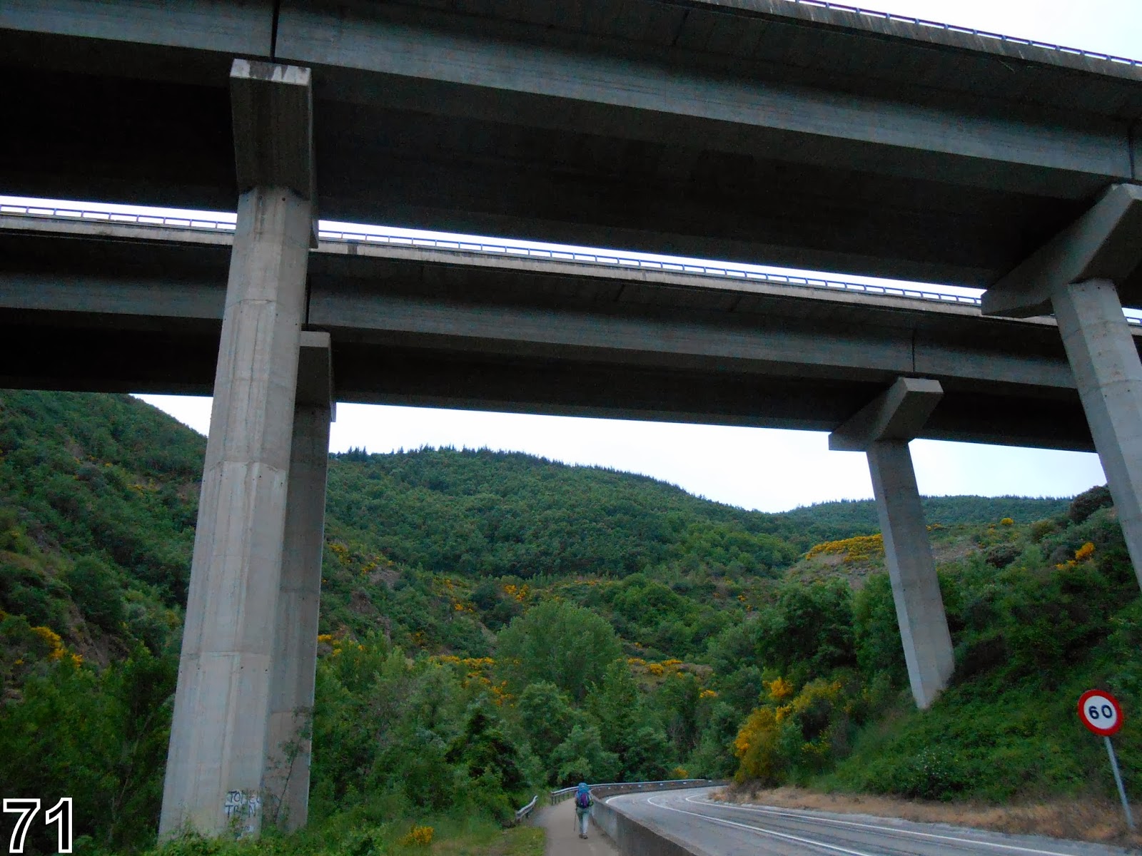 camino sécurisé le long d'une voie peu fréquentée, enjambée par l'autoroute |