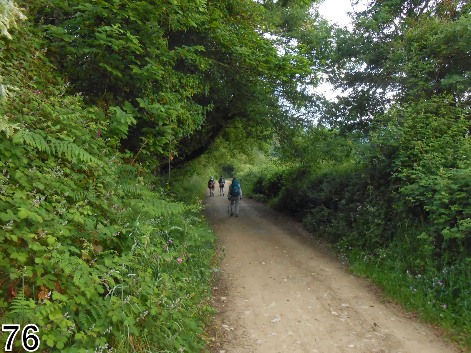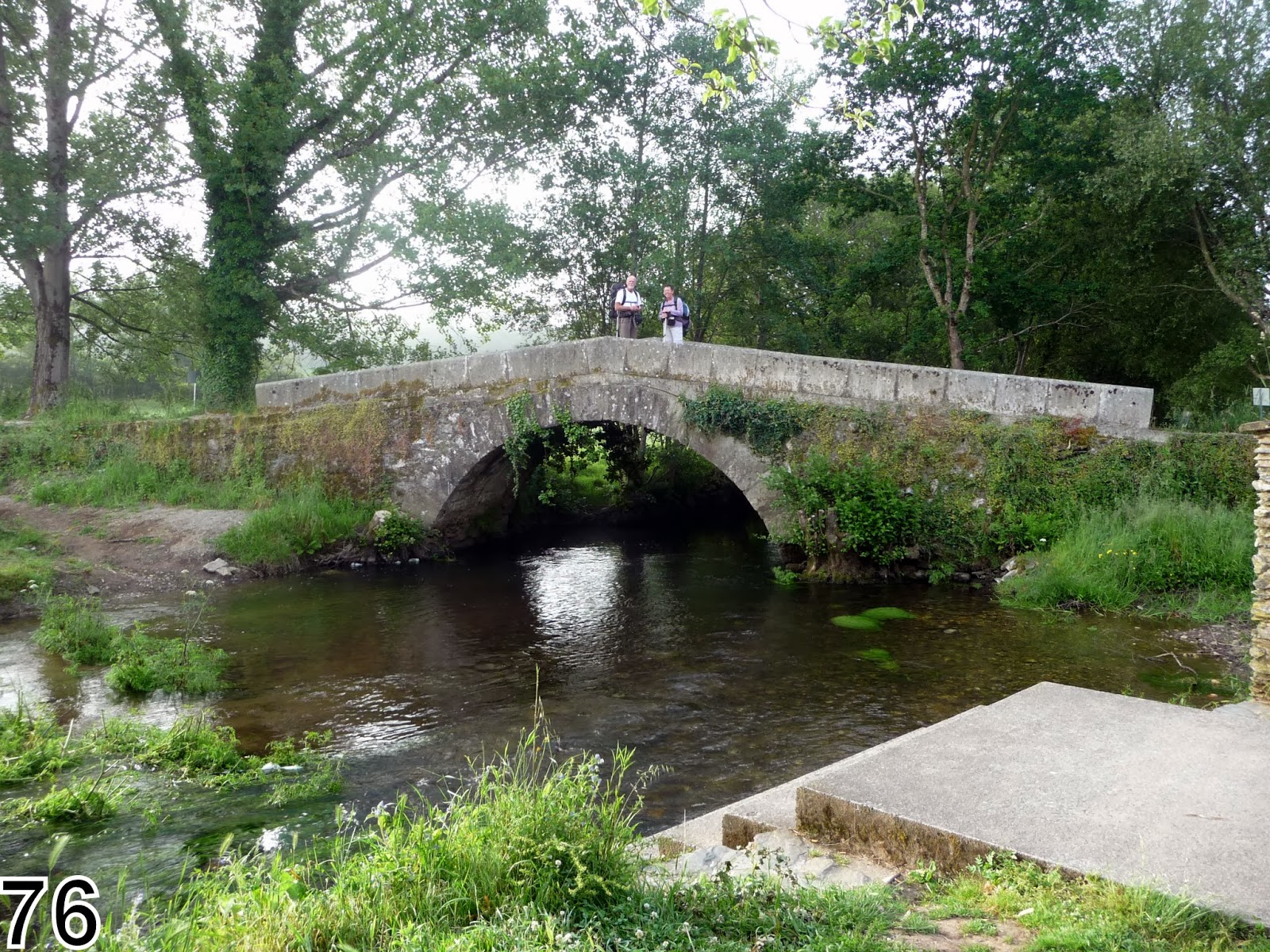Avant de partir nous craquons devant les impressionnants pains au chocolat ! la borne à côté de l'albergue indique 45 km. Le temps est couvert, nous montons et descendons sans arrêt par de petites routes et chemins. Nous sommes dans une région où l'eau coule partout.