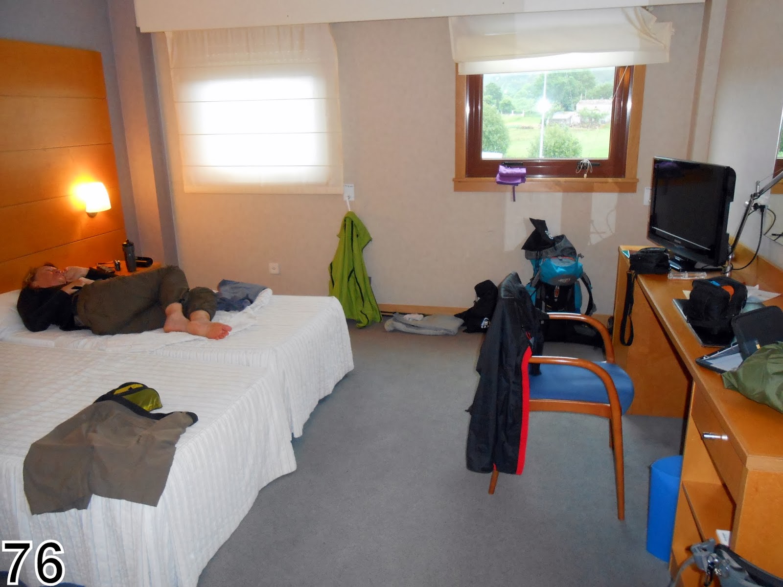 La température baisse rapidement et nous continuons jusqu'à O Pédrouzo où se déroule une course cycliste. On décide d'avancer encore mais les hébergements se font rares et nous sommes contraints de nous arrêter à Lavacolla à l'hôtel 3 * Ruta Jacobea !!!