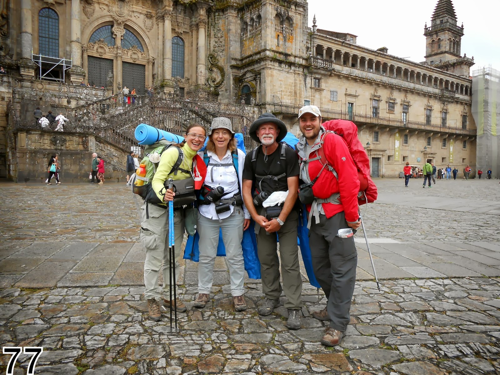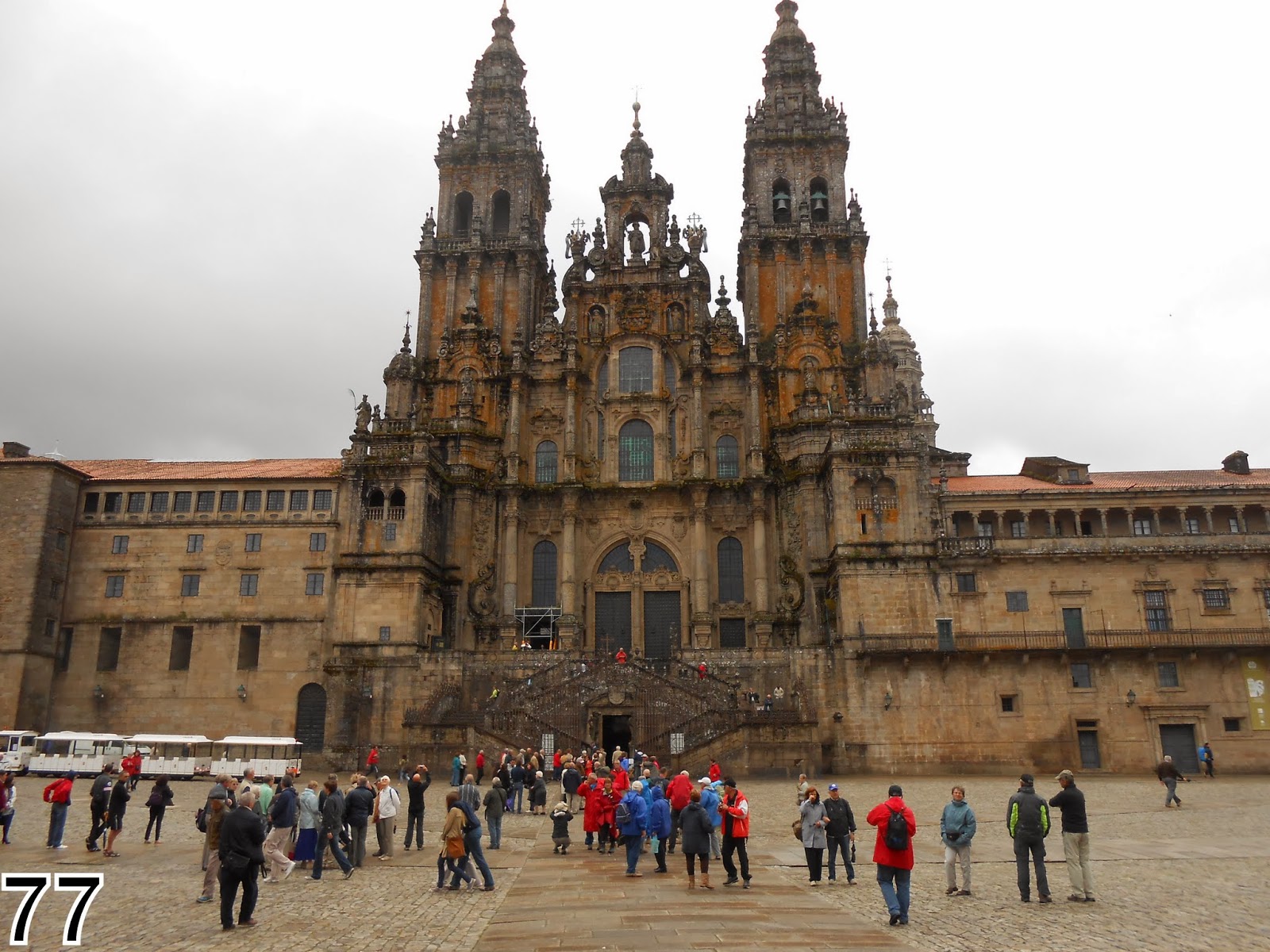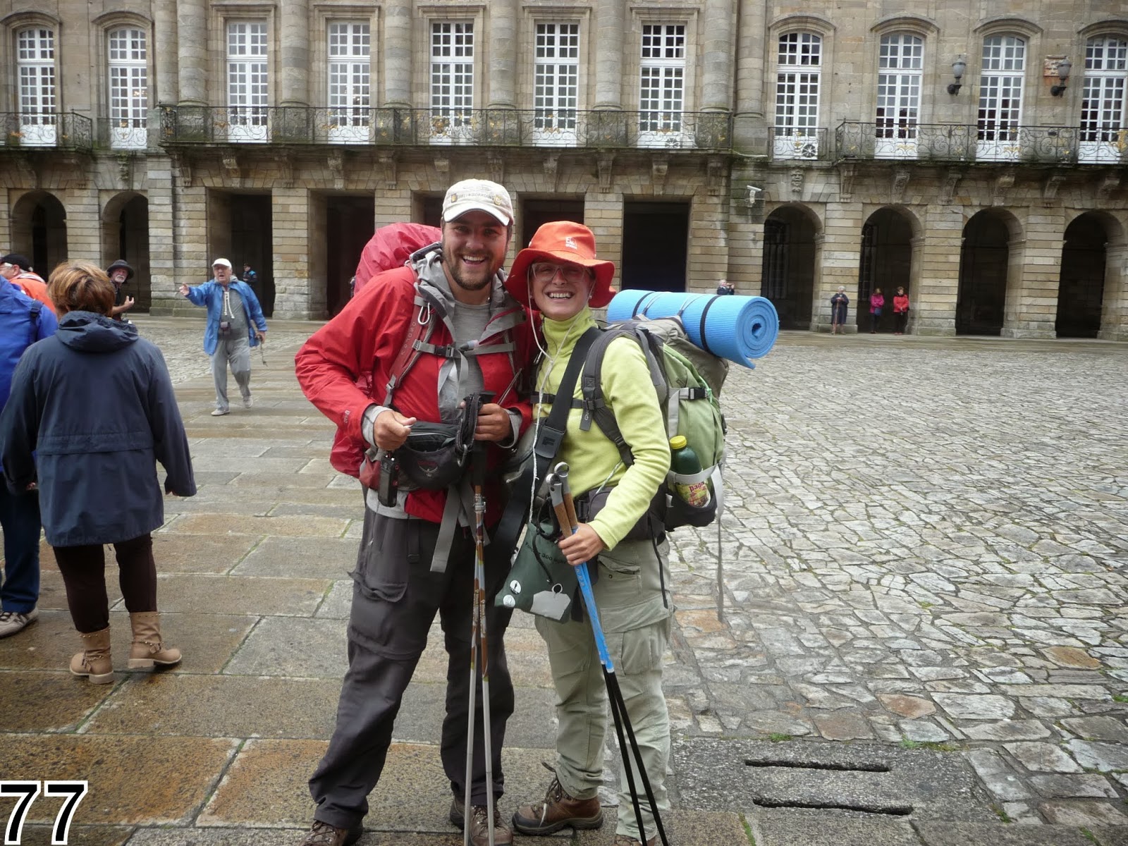 Nous descendons sur Santiago, passons sur l'autoroute, traversons une zone commerciale puis les quartiers anciens et enfin nous sommes sur le parvis de la cathédrale ! Nous sommes saisis d'une étrange sensation mêlée de joie, de fierté, nous avons réussi ce grand rêve d'arriver au bout.