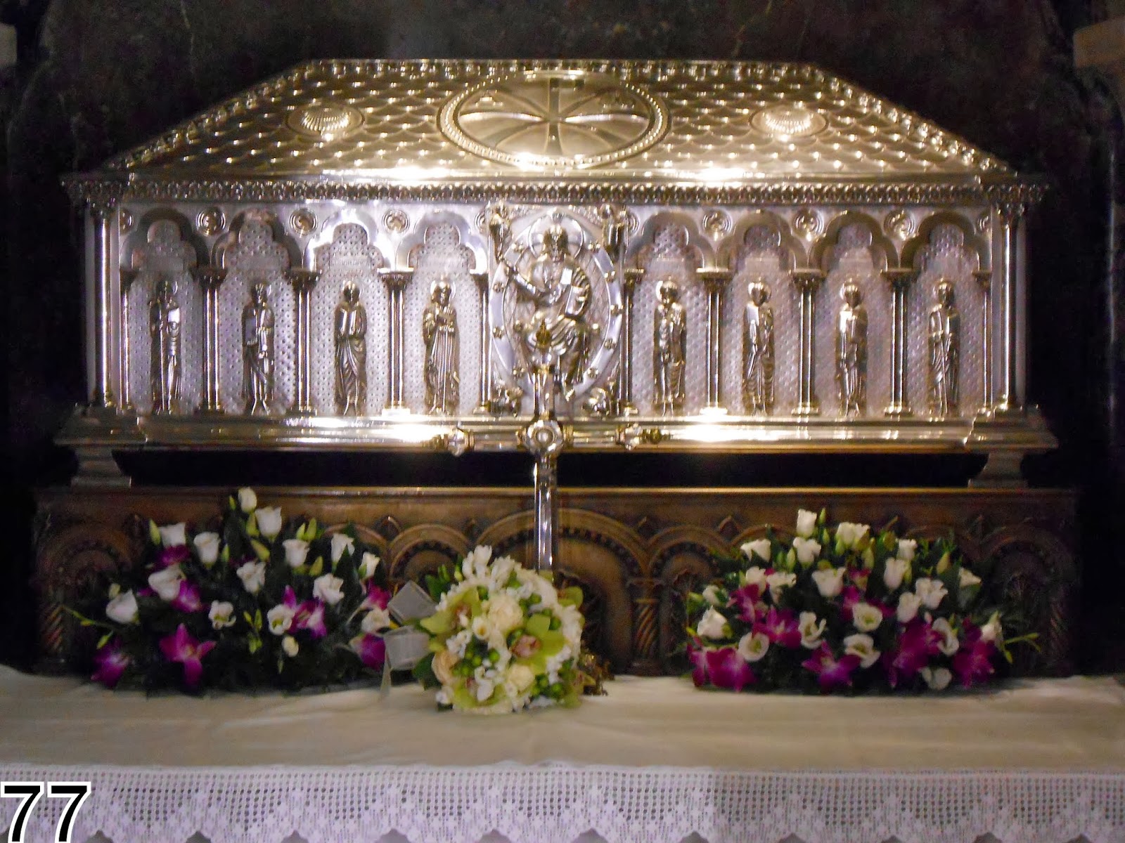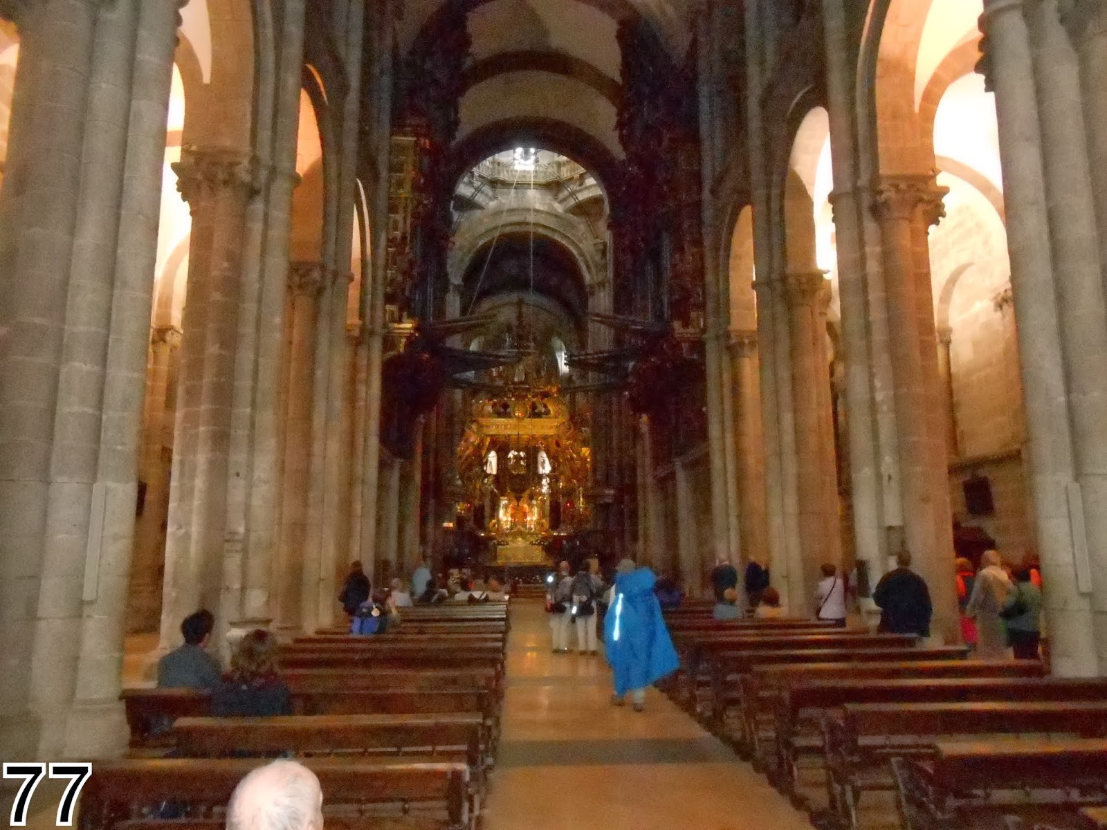 Cet instant passé nous pénétrons dans la cathédrale et allons nous recueillir en attendant la messe des pèlerins de 12 h. L'office sera célébré par l'Evêque entouré de 11 prêtres de toutes nationalités dans une cathédrale comble, les chants religieux sont interprétés par une religieuse à la voix céleste, petite déception nous ne verrons pas le Botafumeiro fonctionner.