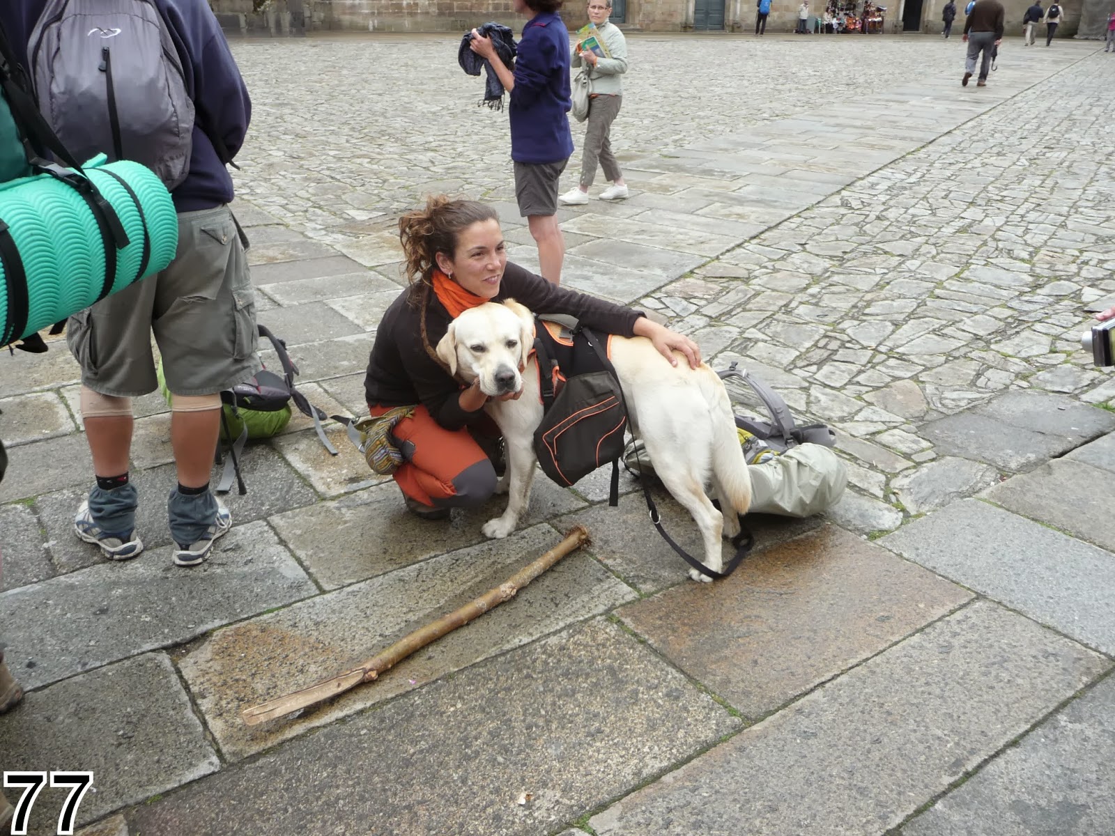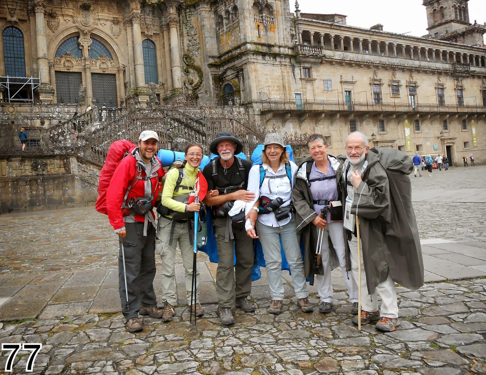 Claudie et Christian éclatent en sanglots dans les bras l'un de l'autre. Soudain alors que les larmes brouillent notre vue, apparaissent Marc et Cécile que nous pensions ne plus revoir. Ils sont arrivés depuis 2 jours et partent pour Fisterra. Grande émotion, photos souvenir ! Ils nous quitteront alors que tout autour de nous ce sont des embrassades, des cris de joie, des retrouvailles et des larmes d'émotion.