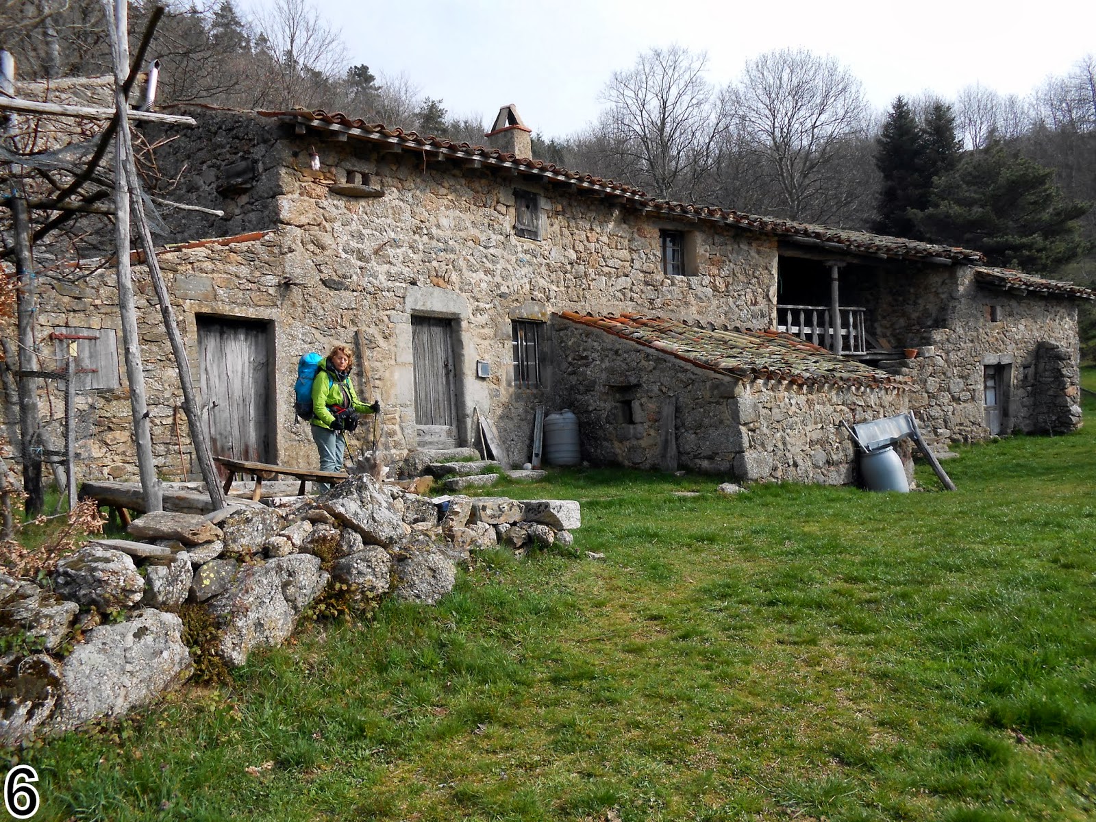 A 11 h pause barre énergétique (merci Raphaël) devant une authentique maison ardéchoise abritée des vents.